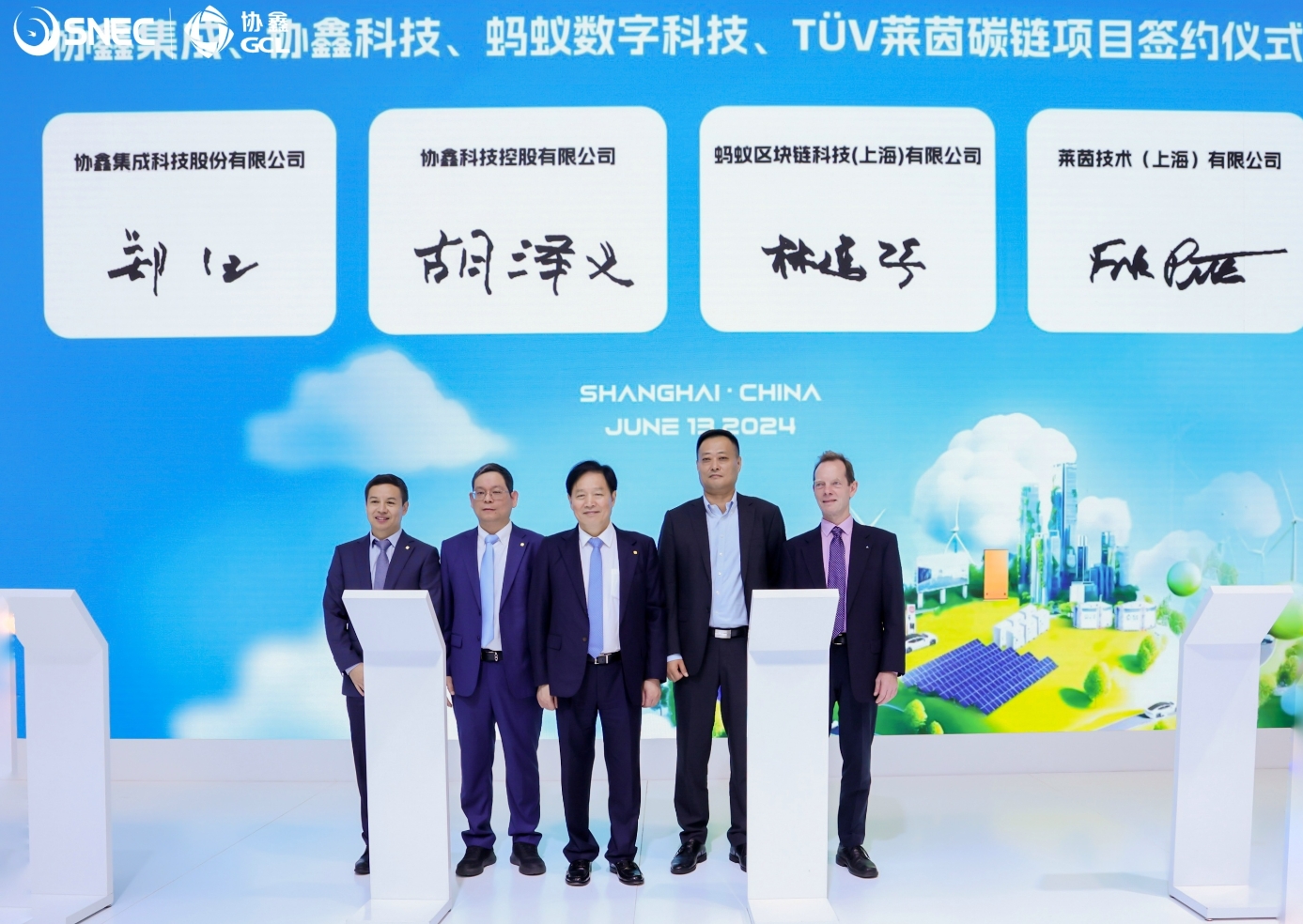 6月13日,第十七届(2024)国际太阳能光伏与智慧能源(上海)展览会开幕首日,协鑫集团旗下协鑫集成(002506.SZ)、协鑫科技(03800.HK)联袂蚂蚁数字科技、德国莱茵TÜV推动协鑫碳链项目升级版全面落地,以此打造协鑫碳链2.