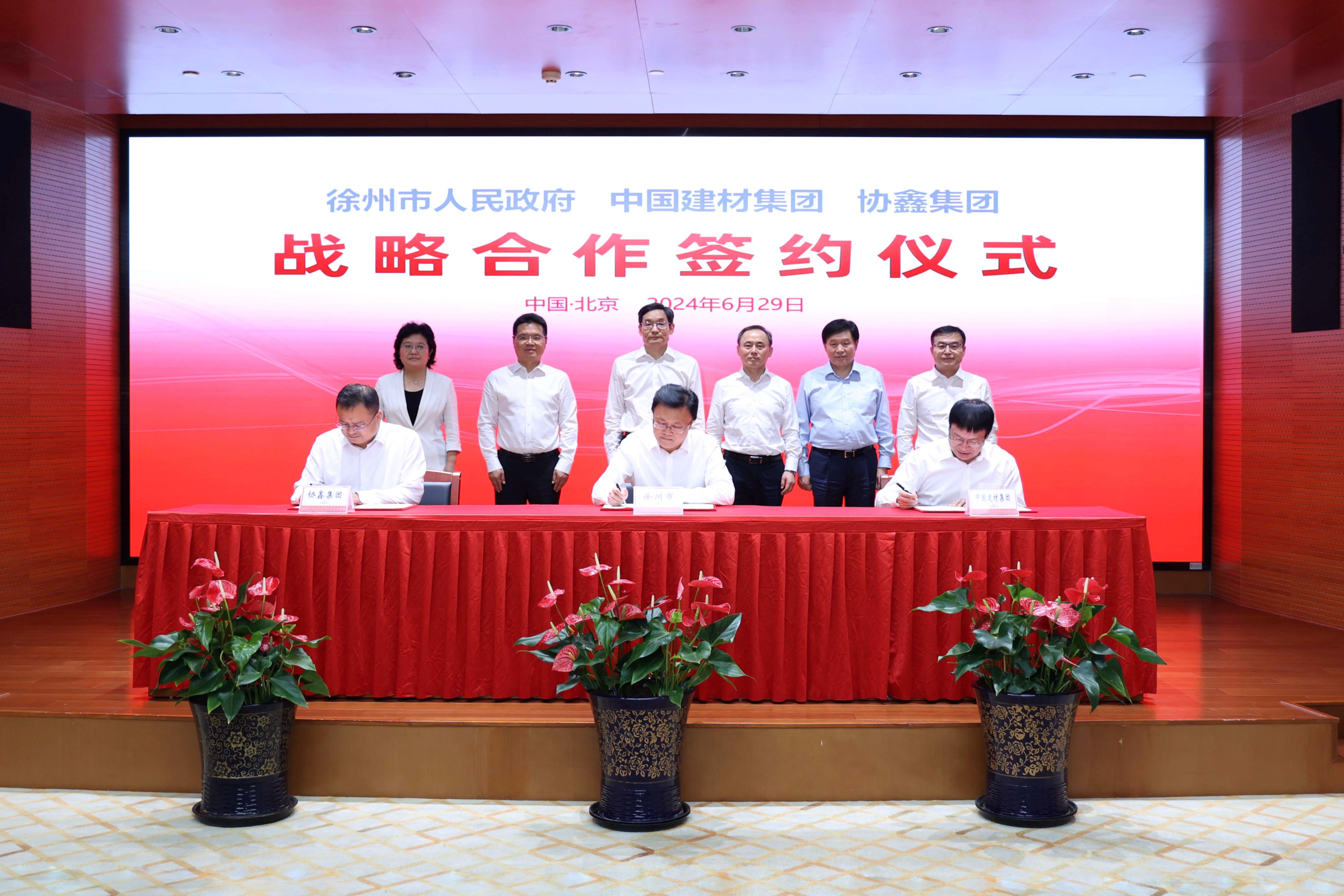 6月29日,江苏省徐州市政府与中国建材集团、协鑫集团在京举行战略合作签约仪式,中国建材集团党委书记、董事长周育先,徐州市委书记宋乐伟,市委副书记、市长王剑锋,协鑫集团董事长朱共山等领导出席并见证签约。 根据协议,徐州市和中国建材集