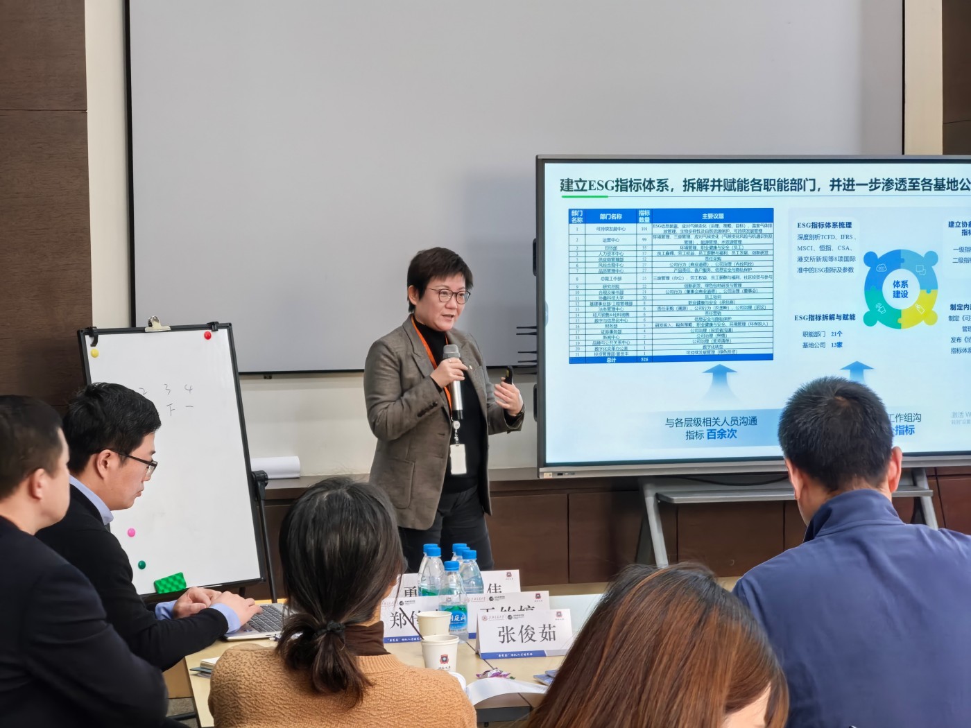 培训期间,学员赴固德威进行实地参访,亲身感受零碳园区建设、海外产品设计及全球化管理实践。固德威可持续发展研究院院长张可男博士以“ESG驱动企业可持续发展:从‘制度成本中心’到‘治理效益中心’”为主题,系统阐述了ESG在气候治理与产业变革中的战略定位,提出“可持续生计资产”是企业应对不确定性的根本保障。她强调,ESG并非单点合规,而是贯穿战略、运营与文化的系统工程,数字化工具是实现高效运转的关键支撑。