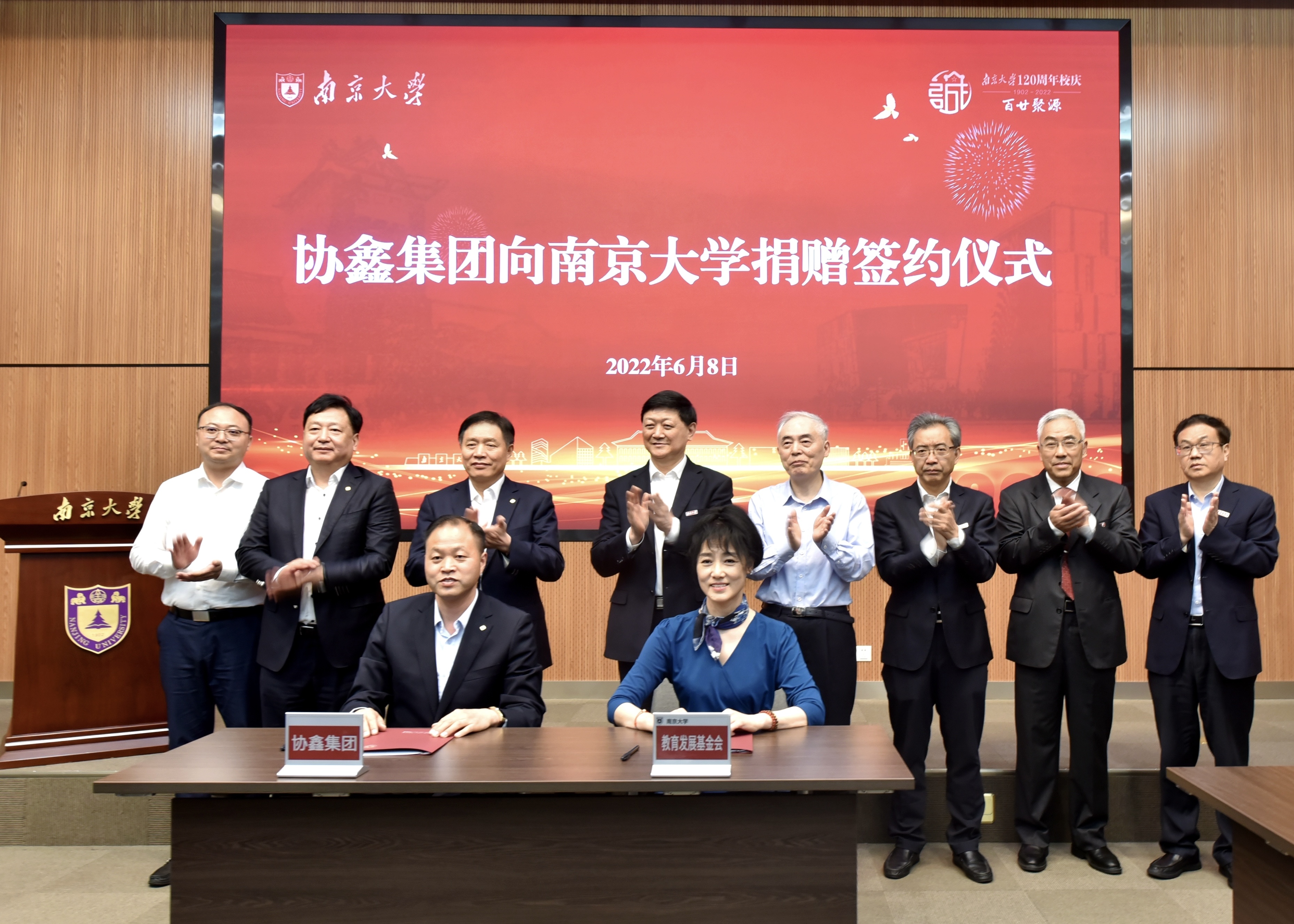 6月8日,南京大学120周年校庆之际,曾不止一次携手南大铸人育学的协鑫集团,再献爱心,向南京大学捐资助学。南京大学党委书记胡金波,中科院院士、南京大学原校长陈骏,中科院院士、南京大学党委常委、常务副校长谈哲敏,党委常委、党委办公室主任王明生和协鑫集团董事长朱共山等出席在仙林校区举行的捐赠签约仪式。仪式由南京大学党委常委、副校长邹亚军主持。