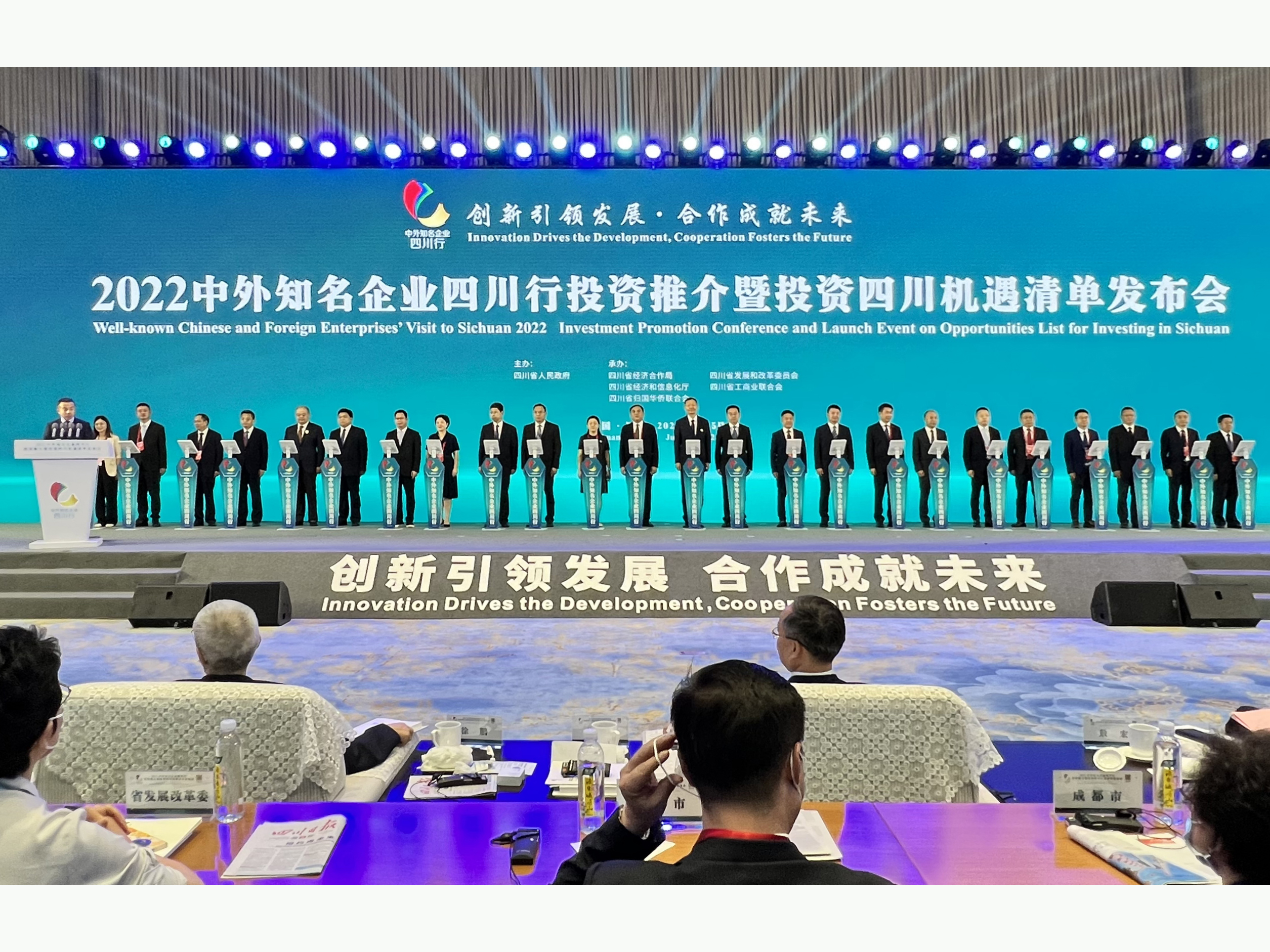 7月15日,作为西南地区招商引资的重要品牌行动,2022中外知名企业四川行投资推介暨投资四川机遇清单发布会在四川成都举行。省委常委、常务副省长李云泽出席会议并致辞;省政府副省长杨兴平作推介并发布《投资四川机遇清单》。中外知名企业及商协会负责人,商务部驻成都特派办、省直有关部门和市(州)负责人参加会议。