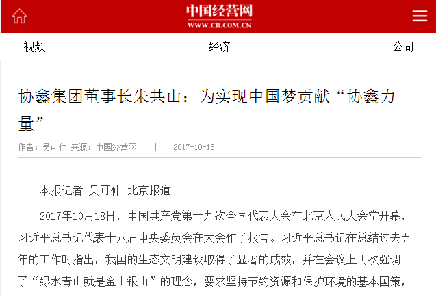 协鑫集团董事长朱共山:为实现中国梦贡献“协鑫力量”